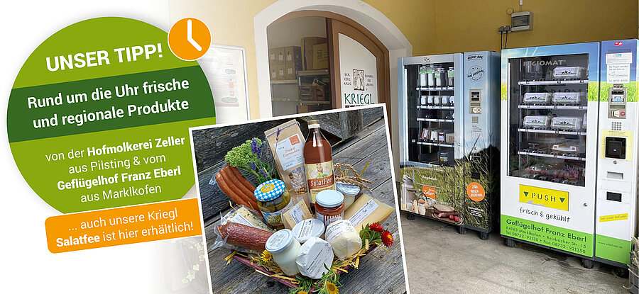 Und auch in der regionalen Gastronomie werden mit Kriegl-Produkten passende Akzente zu kulinarischen Spezialitäten aus unserer Heimat gesetzt, mehr zum Thema "Gelebte Regionalität im Bereich Gastronomie" finden Sie hier.