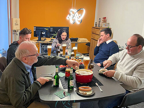 Nach der Verkostung der Trinkbalsam- und Balsamico-Spezialitäten wurden so manche Episoden, aber auch künftige Ziele und Visionen mit der jungen Generation, bei einem von Marion Falterer bereiteten Weißwurstfrühstück ausgetauscht. Mit herzlichem Dank und Wünsche für Gesundheit im Ruhestand verabschiedeten Marion Falterer und Peter Kriegl die Gäste.