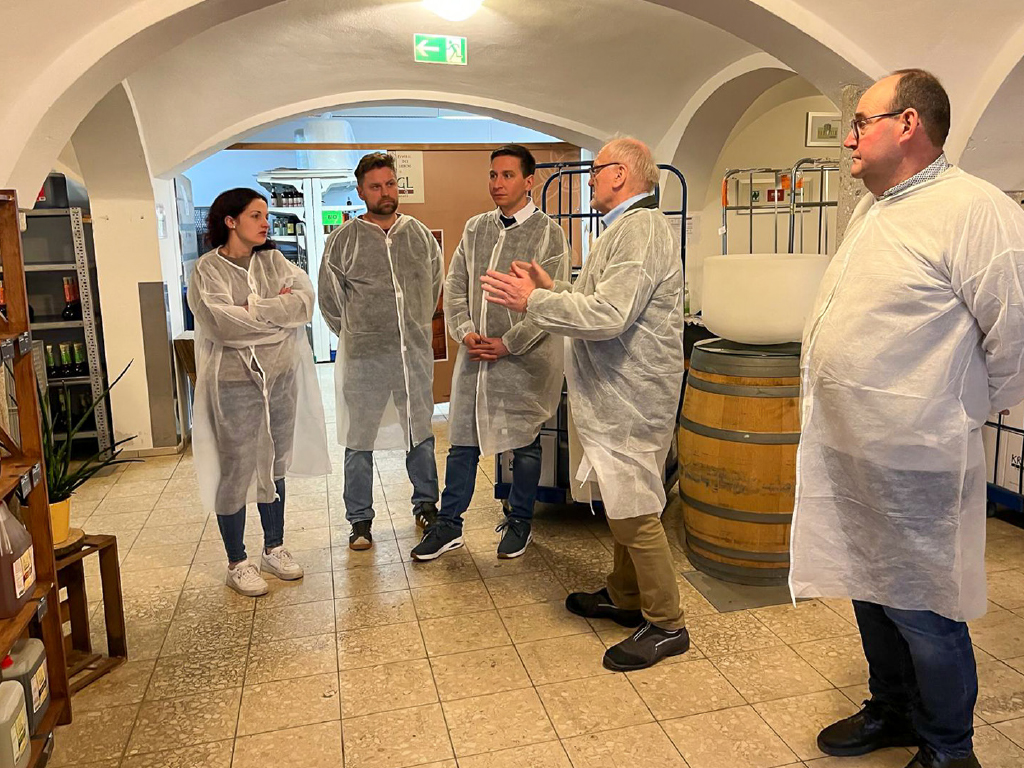 Beim Betriebsrundgang beeindruckten der seit 1950 bestehende „Essigbildner mit Buchenholzrollspäne“, die großen Holzfässer (aus oberösterreichischer Gebirgslärche) und V4A-Edelstahltanks, die Digitalisierung der Produktion, als auch die Produktvielfalt.