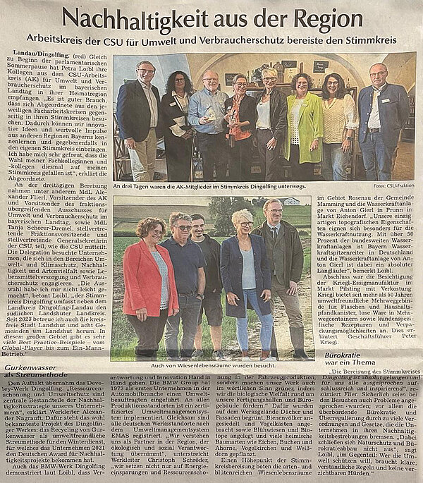 Nachfolgend zwei Presseberichte zu "Arbeitskreis der CSU für Umwelt und Verbraucherschutz bereist Stimmkreis Dingolfing"